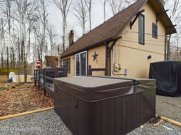 'Property is Under Contract and considering back-up offers only at this time.' Well maintained home in amenity filled Arrowhead Lake. Modern feel in the mountains. Enjoy oversized window that floods inside with sunlight. Sliding door out to cute deck that leads to a new hot tub. Cuddle with with a book by the wood burning fireplace. First floor also features an open floor plan for kitchen and living room, Laundry room, and updated bathroom. 3 bedrooms on second level. Lovely fenced area in front for outside enjoyment with your pups. Arrowhead has 2 lakes, 4 beaches, 3 outdoor pools, tennis, bocce ball, basketball, hiking, fishing, gym, playgrounds. Close to Pocono Area attractions, casinos, waterparks, outlet shopping. Make your appointment today.