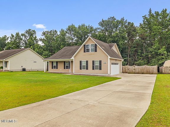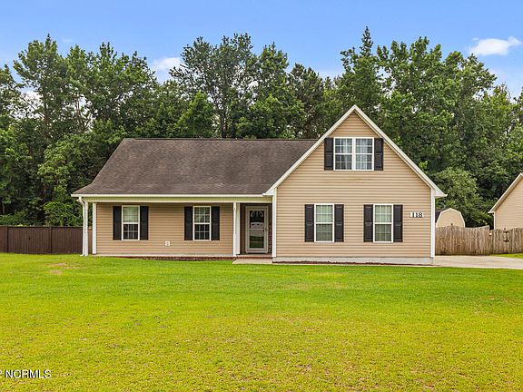 Welcome to 118 Christy Drive! This 3 bedroom 2 bathroom home in Beulaville is minutes away from the Jacksonville airport and Mike's Farm! Upon entering you are greeted with a very spacious and open concept living area. Moving through the open floor plan you will enter into the dining and kitchen area, here you will find access to the beautiful back deck and fenced in yard. The kitchen features ample counter space and a pantry; perfect for the chef in your family. As you continue through the home you will find; two spare bedrooms and a spare bathroom with plenty of storage space, a laundry room, and a primary suite. The primary suite features a walk-in closet, a large en suite bathroom with a double vanity, separate bathtub and walk in shower. This home also includes a few bonuses; a bonus room upstairs that can easily be used as an office space and a side loading 2-car garage! This home won't last long, schedule your showing today!