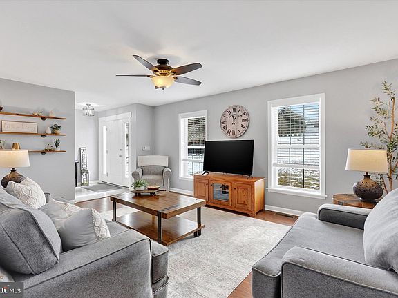 Welcome to this charming ranch home situated on nearly half an acre lot! Totaling over 2,280 square feet of finished space, this home is filled with great features. Step inside to discover a warm and inviting foyer with tile flooring and a large coat closet that opens to the cozy family room. This space features luxury vinyl plank flooring, window treatments, a ceiling fan, and built-in shelving. The kitchen shines with tile flooring, tile backsplash, and durable quartz countertops, seamlessly flowing into a dining area with luxury vinyl plank floors and access to the backyard. Three spacious bedrooms and two full baths, providing comfort and functionality. The walk-out basement boasts a generously sized den with carpeting and a gas fireplace stove, creating an ideal area for entertaining or additional living space. Outdoor living is a delight with a large composite deck overlooking the lovely backyard, complete with patio space below. Conveniently located near shopping, dining, and entertainment. A joy to own!