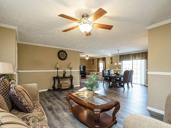 Beautiful setting for this well-maintained on-frame modular home. Open concept with plenty of space and split bedroom layout. Amazing owner’s suite with siting area, spacious en suite with tub and separate shower. Huge walk-in closet. Kitchen features island with bar seating, plenty of cabinet and counter space. Dining space is open to family room and formal living area. Three additional bedrooms plus two more full baths make this home very functional. Enjoy upcoming summer nights on the huge deck overlooking a gorgeous yard. Storage building will stay. Welcome Home!