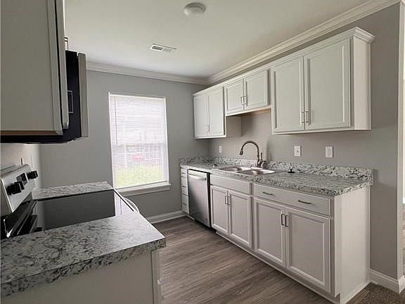 natural light. There is also a pantry with a separate laundry room. The master suite is large with an attached bath and