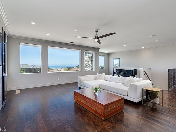 Don’t miss this impeccably stunning coastal retreat, panoramic ocean view home in the upscale neighborhood of Las Ventanas Del Mar. With no expense spared, this modern and sophisticated 3 bedroom, 3 bathroom private custom home features an open floor plan with wood flooring throughout and breathtaking views from nearly every room. Open to the living room, the chef’s kitchen is an entertainer’s delight with luxurious natural stone countertops, custom cabinets, stainless steel Wolf 6 burner gas range, Sub Zero refrigerator, and walk-in pantry. There is a terrace off of the dining area and kitchen, perfect for entertaining and relaxing while taking in the incredible views. In the living room, sleek, custom built-ins, and gas fireplace are surrounded by Travertine tile and large windows offering abundant light. There is an additional large terrace off the living area offering more ocean views and plenty of room for all your friends and family. The main level, large Primary retreat has 2 finished walk-in closets and its own terrace to enjoy a warm cup of coffee and soak up the sunshine. The Primary bath has a large luxurious soaking tub and separate walk-in shower along with double vanities with gorgeous marble countertops. There is a large, private, drought-resistant, landscaped backyard that backs up near Price Historical Park, giving the ultimate feeling of privacy and walking distance to hiking trails. Only minutes to the beach, nearby wine country, fabulous restaurants and shopping, surfing, paddle boarding, kayaking, and year-round family fun events -don’t let this opportunity slip by!