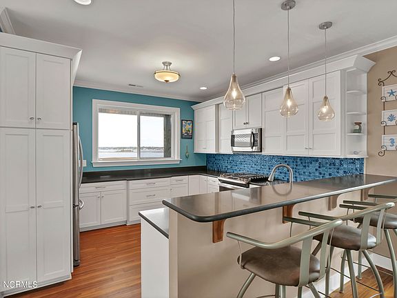 Whether you're looking for your forever home or an investment property, this coastal charmer has it all! Location, ocean views, sound views, beach access, and amenities...Own one of the largest floor plans in the premier community of The Live Oaks of Topsail. This well-maintained residence offers 4 Bedrooms, each with their own private deck and ensuite bathroom, a reverse floor plan with the living area on the top floor to capitalize on the ocean and ICW views from two additional decks. The three stop elevator, LVP flooring throughout, tankless water heater, laundry room and a tandem two car garage with storage area are just a few of this home's notable features. Community amenities include a swimming pool, clubhouse with pool table, and a boardwalk out to the sound for beautiful views and kayaking. Enjoy the salt life and extraordinary living at its finest!