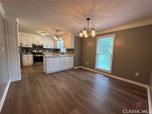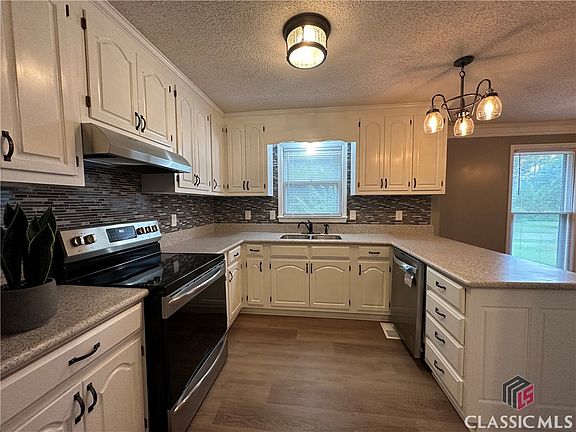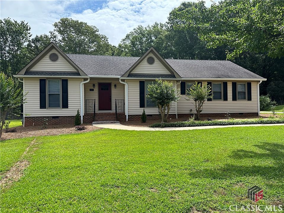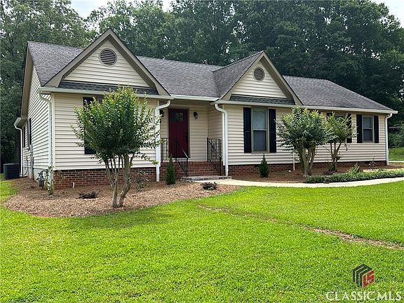 Bring Your Back-ups!! Fabulous Oconee County one level home near downtown Watkinsville! This renovated 4 bedroom/2 bath home has been restored with attention to every detail. As you enter this home, you are greeted by the generous foyer and then steps away is the dining room, kitchen and great room. The dining room and kitchen feature new LVP flooring and the great room and all bedrooms have new luxurious carpet. The custom designed kitchen has all new stainless-steel appliances, miles of solid surface countertops and lots and lots of fresh white cabinetry and 2 pantries. The great room has a tray ceiling, new fan/light and fireplace with gas logs. It is large and leads to the sunroom overlooking the huge new deck and backyard. The main bedroom is very spacious and has a beautifully modern updated ensuite bath with dual vessel sinks and mirrors, a modern step in shower and tile flooring. The bath is made more private with a new barn door separating it from the bedroom. The final touch is the large walk-in closet. This home features the split bedroom floor plan and there are 3 more bedrooms on the opposite side of the home. These bedrooms have brand new carpet, nice sized closets and new ceiling fan/lights. The guest bath has been treated to a modern update with dual vessels sinks, dual mirrors, modern lighting and tile flooring. The entire home has been freshly painted, has custom lighting throughout and new flooring throughout. The huge deck is brand new. In addition, the garage has been freshly painted from floor to ceiling, the crawl space has new 6 ML vapor barrier and lighting has been added, landscaping is updated and electrical outlets and breakers in the house and garage have been updated to code. The garage also has attic access for storage. The back yard is level and has a storage building and the new deck makes this home an entertainer's dream. The location is close to downtown Watkinsville and all it has to offer and is an easy, quick drive to Athens. What are you waiting for? Better see this one fast.