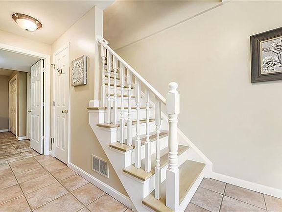 Updated and Upgraded Throughout!! Floor to Ceiling Beautiful finishes sure to Impress! Level entry from the integral garage to the Lower Level of the home with ceramic flooring, nearby laundry, and abundant storage space~ also Great flex space could be your den, play room, or 3rd bedroom. The main level hosts Natural wood flooring, neutral tones, & abundant natural light creating a relaxing retreat. Quartz counter tops w/crisp white cabinets & stainless steel appliances fill the eat in kitchen w/ access to a covered private rear deck offering terrific sunsets. The Living Room is complete with a gas fireplace and bow window. Surround sound fills the home inside & out. The upper level has two generous bedrooms each with their own private full bath. The vaulted ceilings of the master bedroom make the space feel open and airy, Bonuses = walk in closets + spa like bathroom. Great location in Chartiers Township, close to Meadows Casino, Rt 19 & I-79, Tanger Outlet. No more grass to cut!