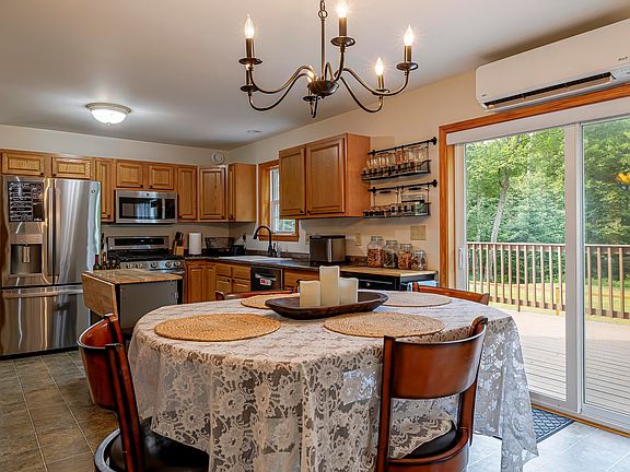 Seasonal water views from this spacious cape style home with 3/4 bedrooms, 2.5 baths, 2584 sq. ft. of living space, large backyard deck for entertaining with family and friends, full walkout basement, private 1.91 acre lot, all located in a wonderful Hancock Subdivision with deeded right of way to Taunton Bay for family picnics and kayaking. The first floor offers a large kitchen/dining are with stainless appliances, cozy living room with hardwood floor and propane fireplace, laundry, also has a heated 28x32 detached garage built in 2015 with drive under overhang for additional vehicle storage, This property has been very well maintained with beautiful manicured grounds, underground power and private drive. Recent improvements include 2 new heat pumps, full house air system and dehumidifier installed in 2023 and new backyard fence. Just a short drive to Ellsworth and the Acadia National Park region!