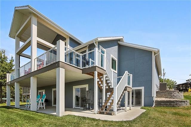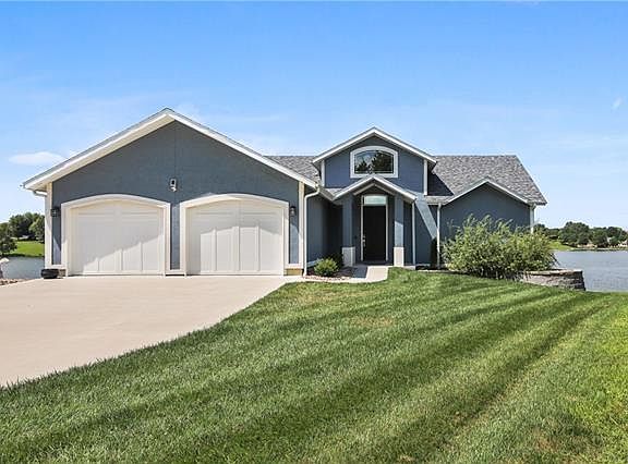 Walk past custom stair bookcase on the way downstairs to the custom full bar and large family room! Off the bar is an area for dining or media room. All bedrooms feature a sliding door with lake views! Walk out basement to covered patio underneath the composite deck which has metal underlining to provide shelter from the rain. Saunter down the backyard to a 12'x16' paver patio to enjoy 168' of shore line. A new cement single well dock with a 12' swim platform was done in 2021. Beautiful established yard, stucco exterior, under eave lighting around the house, 3 car tandem garage with wifi garage door openers and great curb appeal are just a few more of the MANY features of this fabulous home that is an absolute must see to take it all in! All numbers, schools, taxes and measurements to be confirmed by buyers &/or buyer's agents. Two of the bedrooms are non conforming. This home has a useable back yard and a front row seat to incredible sunsets!!