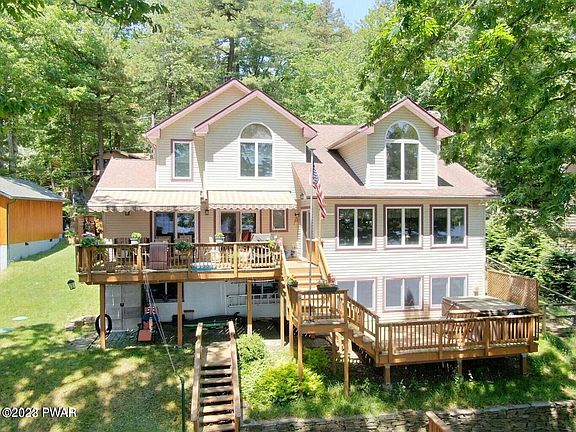 Welcome to 118 Crestview Drive, a magnificent lakefront home located on the shores of Lake Wallenpaupack. This stunning property offers 82 feet of shoreline, allowing you to indulge in breathtaking lake views and enjoy direct access to the water. This Contemporary home was totally renovated in 2005 and boasts a spacious and inviting layout. With three bedrooms, 3.5 baths, and a dedicated office/study, there's plenty of room for comfortable living. The interior features a striking floor-to-ceiling stone fireplace, creating a warm and cozy atmosphere. The modern kitchen with a dining area provides the perfect space for culinary adventures and entertaining guests. Imagine waking up to the serene beauty of the lake every morning from the comfort of your private dock., Beds Description: 1 BED 2nd, Beds Description: 2+Bed1st, Beds Description: 1 BED 2nd, Baths: 1 Bath Level 1, Baths: 1 Bath Level 2, Baths: 1 Bath Level L, Baths: 1/2 Bath Lev 1, Baths: Modern, Eating Area: Dining Area