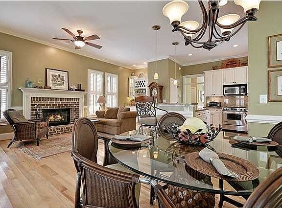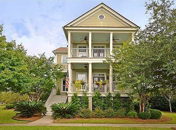 This unbelievable Charleston Single style home on Daniel Island offers three bedrooms, three baths and a two car garage while sitting on a prime lot in Codners Ferry Park. With two covered piazza and a screened-in porch, there's plenty of options to experience the outdoors. You can watch the dog run in the fenced-in backyard and have a drink on the bluestone porch around the fire pit or enjoy peaceful views of the water from the second story piazza. A lush lawn and well manicured landscaping leads up to the beautiful entry. Step inside to find gleaming hardwood floors, high ceilings, crown molding, plantation shutters and 2,339 square feet of living area. The open concept floor plan reveals an inviting living room with a fireplace, built-ins and a patio. The formal dining room has plentyf room for entertaining on holidays and features wainscoting and chair rail molding. The eat-in kitchen is simply stunning with granite counters, undermount lighting, a breakfast bar, built-in wine cooler, stainless steel appliances, a Jenn-Air range (dual convection electric oven with gas cooktop burners), and recessed lighting. This culinary delight opens to the family room with another fireplace and brick surround. French doors here lead to the screened-in rear porch where you can unwind and enjoy a relaxing soak in the hot tub. Upstairs the owner's retreat boasts custom his and her walk-in closets, en-suite bath with dual vanities, walk-in shower, a jetted tub and access to the most relaxing spot in the home...the second story piazza with views of the water. This is a view that you'll never grow tired of waking up to. Other highlights and upgrades to this home include: a new tankless hotwater heater, new HVAC system (gas with electric supplemental), a security system, fiberglass doors to the garage, a separate irrigation meter, upgraded fans and added attic insulation. As a part of Codners Ferry Park you'll have full access to the community pool, playground and boat ramp. This home shows like a model and is waiting for you! Listing courtesy of Matt O'Neill Real Estate.