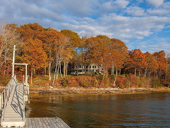 This charming Shingle-style home offers privacy on 2.7 acres of land and 430 feet of water frontage with an impressive deep water dock and mooring. Within its 5,000 sf there are 4 bedrooms, 4 baths and open floor plan offering views from most rooms. Two stairways, a 1st floor guest suite, a wraparound porch and custom woodwork are just a few of the features this wonderful property offers.