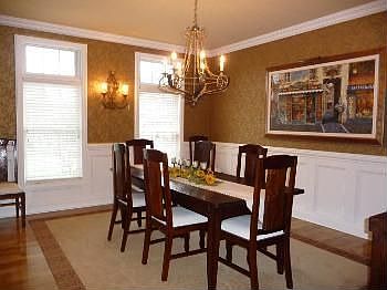 Listing agent: Karen Marshall, Call 412-831-3800 for information. Stately presence prevails throughout this stunning residence. Quality finishes and details are carried throughout. Quite the family home for entertaining, you won’t find more. Exterior: Prime cul de sac with wooded rear grounds. Brick and vinyl construction. Pillared front entry with covered front porch. Shuttered windows and front dormers complete the look. Asphalt drive with three car side entry garage with basketball hoop. Wonderful cul de sac lot provides wooded rear grounds. Sprinkler system. Fenced rear yard provides security for young children. Brick rear patio with built-in fire pit adds to the many extras in this fabulous home. Interior: Enter through colonial door with side lights, arched transom and frosted bronze overhead fixture. Entry provides a wonderful open space, absent of a staircase, opens to Formal Rooms and flow to rear Patio. Gleaming hickory tongue and groove three quarters inch hardwood floors. Richly detailed judges paneling, wainscot walls, and double guest closet. Formal Powder Room with cherry cabinet, granite counter, mirror, strip light and hardwood floors. Nine foot ceilings throughout the first floor. Security system. Living Room: Enter through double true divided light french doors with wide transom, continued hardwood, bronze and glass overhead light fixture, two inch blinds and custom built-ins accent this room along with deep crown moldings. This room offers flexibility to suit your life style. Dining Room: Double entries with transoms from Foyer and angled rear leading to Kitchen. Rich wainscoting with chair rail, crown molding and hardwood floors. Handsome beige on brown leaf motif wall covering with attractive coordinating bronze leaf chandelier. Kitchen: The heart of this home centers around this bright and warming Kitchen. Forty two inch beaded wood cream toned cabinetry with granite counters and large eating area peninsula and rolling center island with drawers for convenience. Kitchenaid stainless appliances, double ovens, refrigerator, gas cook top, dishwasher and charcoal filter exhaust fan. Crown molding and recessed lights. Additional brass leaf frosted glass lights at center island and eating area. Beamed ceiling with transom windows and wall of windows at extended eating area accommodations a large family. Brick patterned taupe toned ceramic backsplash, brushed nickel gooseneck faucet and continued hickory floors. Hall walk-in pantry with extensive wood shelving and cabinetry. Morning Room: Bonus Room for children’s play area, breakfast or computer room. Cheerful with extensive tilt Andersen windows with transoms, crown molding, continued coordinated wainscoting and matching Kitchen cabinets. Family Room: Wonderful entertaining area opens to Kitchen and rear Hall. Focal points include an oversized log burning fireplace with colonial white mantel, brick surround and extended hearth. Hand crafted built-ins with shelves, cabinets and flat screen TV area. Neutral Frieze carpeting and plaid curtains warm the room. Mud Room: Rear of home offers a perfect Mud Room for coats and shoes, man door to side yard and three car attached garage with openers. Durable ceramic tile in earth tones, dark blue and grey tones and a built-in coat racks. Upper Level: Extensive upper Hall is the center of all five Bedrooms and Baths. Spindled railing, chair rail and continued gleaming hickory floors. Nicely sized second floor Laundry with neutral ceramic