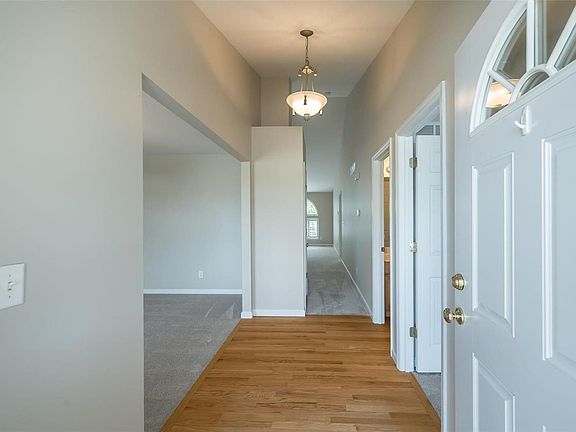 Soaring ceilings, newly installed flooring & freshly painted gives this exceptional 1-sty villa a fresh appeal. Impressive hardwood foyer leads to formal dining room & vaulted great room with marble fireplace & dramatic wall of windows that overlook wooded ground. Chef’s kitchen with 42” oak cabinetry, new stainless steel appliances & 8’ peninsula adjoins light-filled breakfast room with sliding glass door that opens to deck. Coffered primary bedroom suite with wide bay window & luxury bath with jetted tub offers an appealing retreat. A generous-sized additional bedroom, hall full bath & convenient laundry complete the main floor living quarters. Lower Level entertainment space includes recreation room, 3rd bedroom & full bath. Situated on a private cul-de-sac lot with covered deck, patio & 2-car garage. Enjoy carefree living with included lawn maintenance, irrigation system & snow removal. Convenient Dardenne Prairie location just minutes from shopping, restaurants & Kinetic Park. Location: End Unit, Ground Level