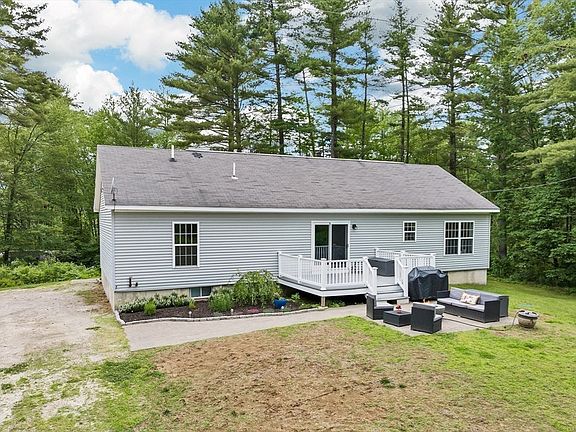 Sought after Candia! Escape the hustle and bustle of city life and embrace the serenity of country living on this picturesque 8 plus acre property with a babbling brook. Perfect for those with a green thumb or a passion for animals, the property boasts a spacious 2 stall barn with potential for expansion. Step inside this charming open concept 3 bedroom, 2 bath ranch and be greeted by a beautifully updated kitchen featuring granite countertops, a breakfast bar, and sliders leading to an oversized deck and patio overlooking the expansive backyard. Easy care laminate floors flow throughout the home, adding a touch of modern convenience. Additional highlights include a full basement for extra living space, FHA heat for cozy winters, and access to nearby conservation areas and trails for outdoor adventures. Don't miss the chance to own this unique property