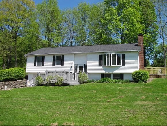 Country Living yet close to town! Pride in ownership shows in this beautifully maintained home on 5.6 acres. Brand new in 2018 Septic System and Boiler! Layout has a split entrance and a basement walk-in entrance (mud room into family room). Outside a large deck wraps around 2 sides, views of lawn and garden, fruit trees and berry brushes!
