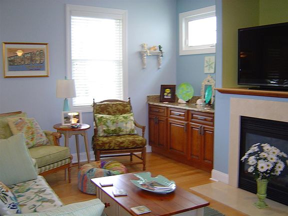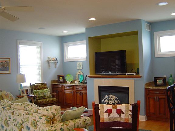 The is an extraordinary single-family, contemporary home and a rare find on the East side of family friendly North Wildwood. This exceptional home has never been rented and has been meticulously maintained. Consisting of 4 bedrooms and 2 and a half bathrooms, dual zoned, forced hot air heat and central air conditioning. Entering the first floor you will immediately admire the open concept, 9' ceilings and craftsmanship that went into the design and building of this home. The foyer, dining room and living room are equipped with beautiful light hardwood floors. I can't imagine the need for anymore kitchen cabinets or counter space than what is already in this beautiful kitchen. Luxury abounds from the granite counter tops, appliances. custom 40 inch glazed cabinets with nickel hardware, to the island stools. Just on the other side of the kitchen is the spacious living room with a natural gas fireplace and dining room. Access to the fiberglass deck, which runs the width of the home is made via a slider. There is a large closet on this floor along with a half bathroom and behind the kitchen, there is a a room with cabinets and a granite counter top utilized as dry bar, and cupboard. The second floor consists of two large bedrooms, both having access to a fiberglass deck, running the width of the home and a full bathroom. Moving to the top floor, there is additional large bedroom and a very large Master Suite with a gas fireplace, rear deck access through a slider and a beautifully appointed master bathroom with ceramic tiles, Jacuzzi tub and large vanity with a granite counter top. This home is ready to be moved into and enjoyed. All the furniture is included with this great property, with the exception of the dining room table and hutch. There is not a better way to start making your family memories in this great Summer resort, than creating them in thia great property