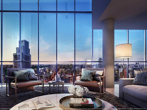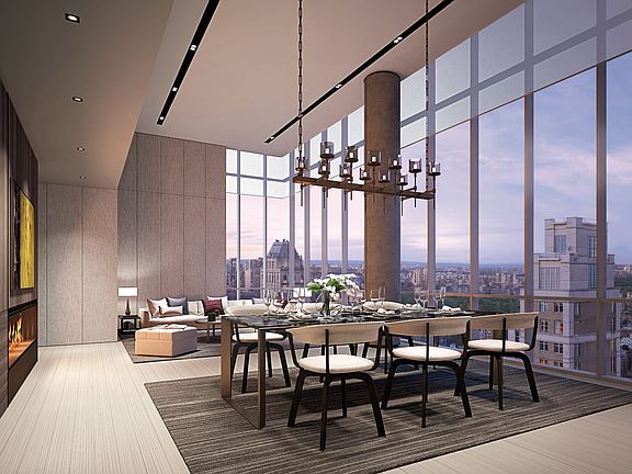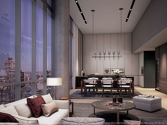The 118 E 59th, a 44-story masterpiece, developed by Euro Properties and designed by Soo K. Chan, presides over 59th & Park Avenue offering estate living with an outdoor garden/entertaining area, dining room, library, gym, 24 hour doorman and concierge and much more. The crowning residence is a full 3 floors penthouse with 15.5 feet soaring ceilings and solid oak floors. The open floor plan, complete with a total of 3 fire places, allows for sumptuous light-filled spaces throughout, boasting panoramic views all the way from downtown New York to Central Park to the Atlantic Ocean. The Great Room with flows seamlessly into the Dining Room and integrated kitchen making this an exceptional space for entertaining. The full floor Master Bedroom is complete with en-suite master bath, walk-in dressing area and panoramic views of Midtown Manhattan and Central Park. The south facing Library allows for maximum views with floor to ceiling glass windows.ENTRANCE + LOBBY Fully covered entry canopy with radiant heated side walk and entry vestibule. 24 hour doorman and onsite / virtual concierge service curated by Abigail Michaels Concierge. White glove mail delivery. Hot and cold delivery storage and large parcel storage. SCDA signature water feature designed to create a transformative arrival experience. SCDA designed reception desk with Honed Arabescato marble. Two high-speed elevators, with custom designed elevator cab decorated with black stainless steel, custom fitted lighting and finely detailed wood paneling in the elevator lobby.AMENITIES State-of-the-art fitness center with latest Technogym cardio equipment and private training room. Private treatment room with steam shower and separate changing facilities. Fully furnished residents lounge featuring professionally equipped Gourmet catering kitchen with fireplace, furnished outdoor terrace enhanced with green walls and sculptured water feature. Serene private dining room served by Gourmet catering kitchen with private access to contemplative Zen garden. On-site private storage locker. On-site bicycle storage. Full time offsite residential manager.