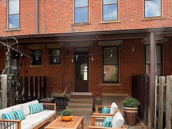 Located in the heart of German Village, an historic district in Columbus Ohio, this two story, two bedroom townhouse is a classic German Village apartment, with exposed brick walls, a decorative fireplace, original refinished old pine floors and a private patio for grilling or lounging. A skylight and large windows make this a sunny, cheerful place to live. The spacious kitchen with stainless steel island is great for cooking and entertaining. A pass through from kitchen to living room makes entertaining easy. There is a full, dry basement for storage. A washer and dryer are included, as are central air conditioning and storm windows for energy efficiency. The Frankfort Street location is within easy walking distance of Schiller Park and popular German Village restaurants and coffee shops. It is in the center of German Village. Tenants pay gas, electric and water, Landlord pays trash and recycle pickup. We allow one house cat in each unit.