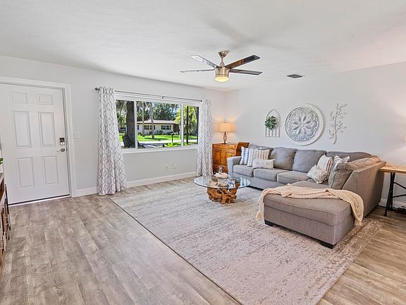 You must see it to believe it!! Here is your completely turnkey cutie in an established, non-hoa community with mature landscaping that gives you all the good feels whether you are inside or outside! Schedule your showing today and see for yourself. Roof is 2016, cast iron was relined recently (2024) and has a 50 year transferable warranty. Impact windows and doors (including garage door). Exterior paint 2023. Updated light fixtures throughout. The laundry room off of the kitchen also serves as a pantry with custom built-ins. Durable luxury vinyl plank flooring throughout, white shaker cabinets, granite counters and stainless steel appliances in kitchen. The location is ideal as it is tucked back within the community but offers immediate access to shopping, schools, restaurants, gyms, and beaches! Welcome HOME!
