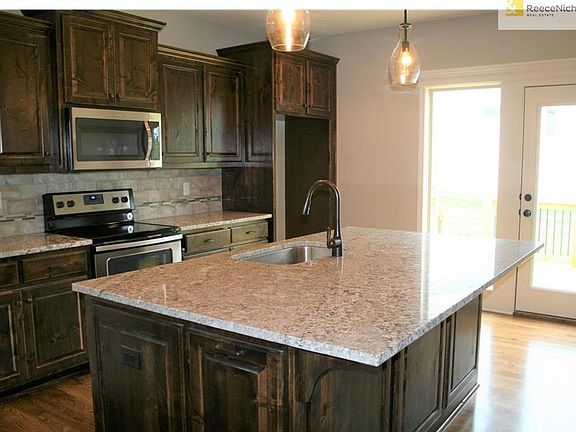 Beautiful Reverse 1.5 built by Walker Custom Homes. Granite counters in kitchen with custom cabinets, oversize kit island, walkin pantry, hardwood flooring and SS appliances. Vaulted ceiling in great room has stone f/p. Large master suite has tray ceiling, oversize walk-in closet and sitting area with custom built in desk. Tiled shower, dbl vanity and sep toilet in master bath. Second bedroom, full bath and laundry on main level. 3rd and 4th bedroom, full bath, family room and storage room on the lower level.