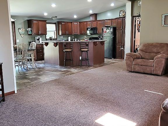 Home for sale on beautiful river front property. Very nice 5 year old 3 bedroom/2 bath Modular with unattached 3 stall garage. House features an open floor plan. Spacious kitchen with a lot of cupboard space and huge island. The master bed and bath both offer walk-in closets. The garage has a built in loft for extra storage.