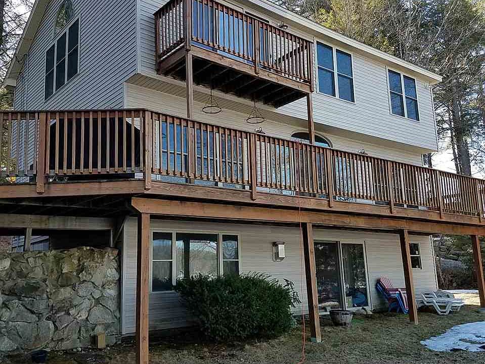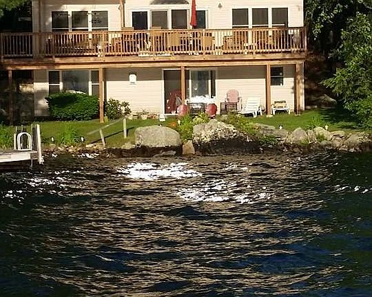 WEEKLY...This modern Lake Winnipesaukee waterfront vacation rental with three floors of living space, 2 fireplaces, accommodating 10 people is perfect for families. Large second floor deck overlooks water, 35' dock, and has stunning views of Mt. Major. Idealistic location on a point shared by only a few waterfront homes. A bright, cheerful home with western exposure sunsets. You will not be disappointed, as there is so much to do on Lake Winnipesaukee, and in NH! Enjoy Alton Bay and nearby Wolfeboro, great restaurants, shops, boating, hiking, fishing, swimming. NH R&M TAX LIC# 024832 ALDAS