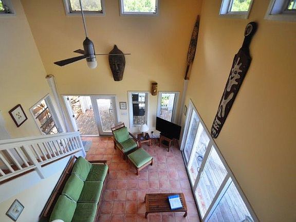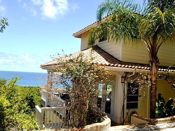 Surfside is a three bedroom, three bath home located in the uniquely beautiful Reef Bay area of Fish Bay. Situated on the edge of the undeveloped National Park land, the home is a short stroll via nature path to the secluded white sandy beach of Reef Bay where you can enjoy snorkeling, surfing, swimming and beach combing. Ample porches, sunning decks, pool and Jacuzzi, air conditioned bedrooms and lush landscaping complete the picture. Offered furnished at $1,495,000.