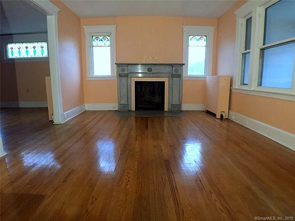 There is much potential in this spacious three bedroom house to restore it to be your new home! Living room with fireplace. Hardwood flooring on first floor. Stained glass windows add to the charm in the house. There is a first floor bedroom and first floor full bathroom. This is a Fannie Mae property.