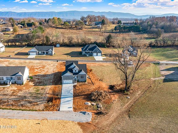 Final touches just completed on this spectacular new construction home. Located in a highly sought-after family friendly 15 lot subdivision. This last available new construction home offers a large .93-acre lot at the end of Eva Way with beautiful open space views. Upon entering you will find an impressive functional floor plan with many upgraded finishes throughout, including crown molding, gorgeous lighting package and ceiling fans, LVP flooring. The main level offers 9ft ceilings and an open great room with floor to ceiling stone gas fireplace. The modern designed kitchen offers beautiful granite countertops, tile backsplash, kitchen bar, stainless appliances, pantry and the roomy dining area makes this a perfect addition for entertaining or spending time with family. The main floor owner's suite offers a comfortable and relaxing area with large walk-in closet, a beautifully finished bath featuring a walk-in tile shower, dual sinks, plenty of cabinet and storage space, granite countertops and tile flooring. A 1/2 bath and mudroom/laundry area complete the main level. Upstairs you will find two large bedrooms with ample closet space, a full bath with granite countertops and tile flooring. An additional flex room could serve as an office, den or media/game room whatever fits your needs. The large level lot has plenty of room for kids and pets or a swimming pool, possible space to park RV. Country setting but only approx. 5 miles to local shopping and restaurants, approx. 12 miles to McGhee Tyson Airport and convenient to Fort Loudon and Tellico Lake. Buyer and Buyers Agent to verify all information. Owner is licensed real estate agent.