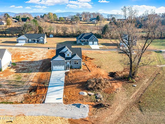Final touches just completed on this spectacular new construction home. Located in a highly sought-after family friendly 15 lot subdivision. This last available new construction home offers a large .93-acre lot at the end of Eva Way with beautiful open space views. Upon entering you will find an impressive functional floor plan with many upgraded finishes throughout, including crown molding, gorgeous lighting package and ceiling fans, LVP flooring. The main level offers 9ft ceilings and an open great room with floor to ceiling stone gas fireplace. The modern designed kitchen offers beautiful granite countertops, tile backsplash, kitchen bar, stainless appliances, pantry and the roomy dining area makes this a perfect addition for entertaining or spending time with family. The main floor owner's suite offers a comfortable and relaxing area with large walk-in closet, a beautifully finished bath featuring a walk-in tile shower, dual sinks, plenty of cabinet and storage space, granite countertops and tile flooring. A 1/2 bath and mudroom/laundry area complete the main level. Upstairs you will find two large bedrooms with ample closet space, a full bath with granite countertops and tile flooring. An additional flex room could serve as an office, den or media/game room whatever fits your needs. The large level lot has plenty of room for kids and pets or a swimming pool, possible space to park RV. Country setting but only approx. 5 miles to local shopping and restaurants, approx. 12 miles to McGhee Tyson Airport and convenient to Fort Loudon and Tellico Lake. Buyer and Buyers Agent to verify all information. Owner is licensed real estate agent.