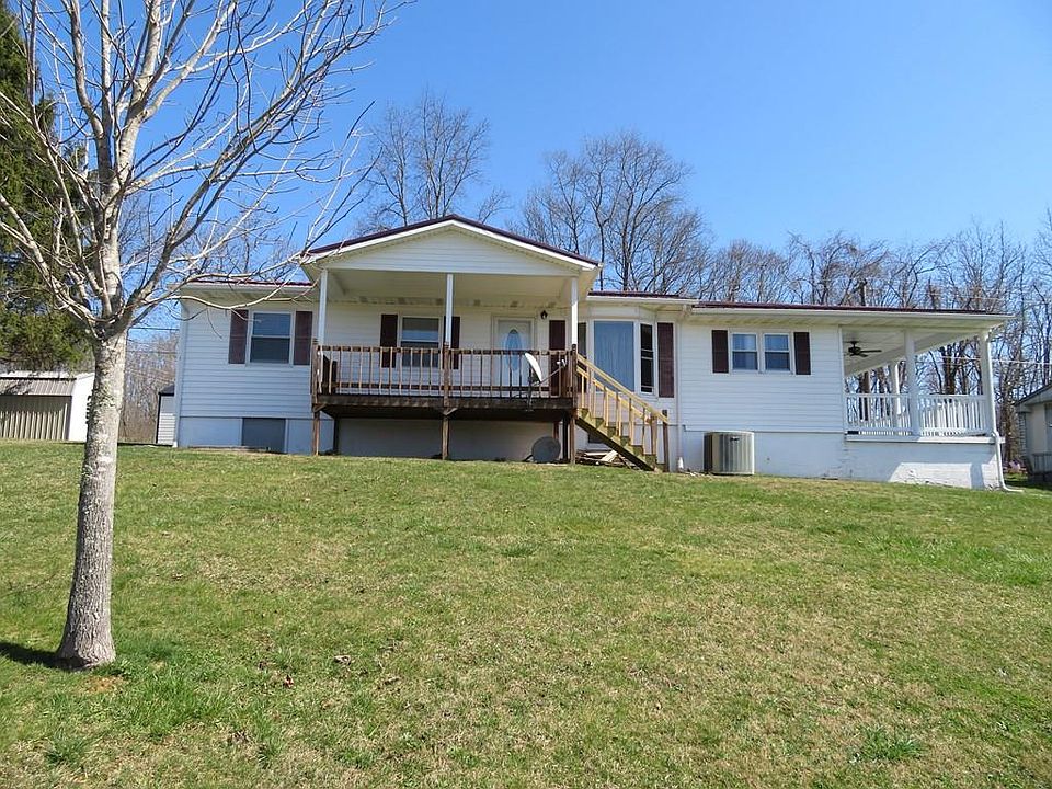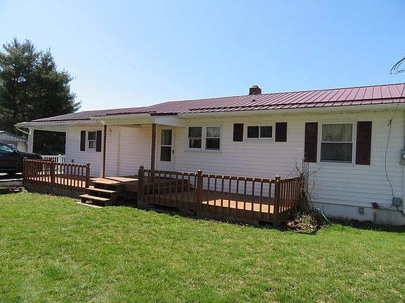 Charming 1950's, 2 bedroom ranch style home located on Christmas Tree Hill with a spectacular view of Richlands from the front porch. Nice yard with garden area. Two storage buildings and a really nice carport that can also serve as a covered porch. Rear patio for outdoor entertaining. The interior of the home has just been freshly painted. Hardwood flooring in the formal living room, hall way and bedrooms. The galley kitchen has oak cabinets with laminated counter tops/back splash and vinyl flooring. One super nice bath with custom shower and updated appliances. The den offers laminate flooring, painted drywall and is located so that it could also provide additional dining space if needed. Basement has both an inside and outside entrance and offers storage and a work bench. Metal roof, HP, replacement windows, convenient in town location. Ready for the new owner.