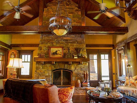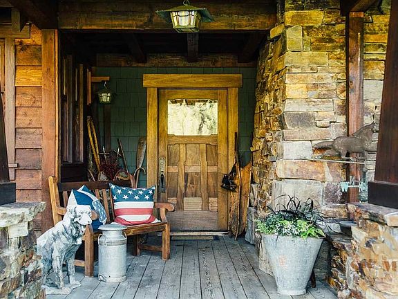 Artful design by Larry Pearson. Nestled in Bridger Canyon w/ Bridger Creek meander by this stone & timber constructed home. Four fireplaces in the living area, dining, master bdr & the covered outside entertaining area. Wrap around porch welcomes you into the home. Enter thru custom front door to special use of wood timbers, trim & flooring. Kitchen ample for entertaining plus custom built bar w/ wine storage room. Guest Qrts include 2 bdrs & 2 baths, full SS kitchen appliances for total of 3693 SF.