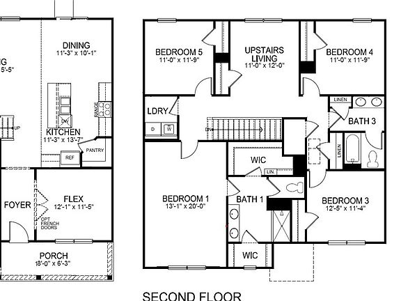 The Hayden, 2511 sq ft is a 5 bedroom with an open design with lots of space. Downstairs features a study, guest bedroom and full bath. The kitchen offers quartz countertops, stainless steel appliances and a spacious pantry with a huge island overlooking the great room. Four additional bedrooms, a loft space and the laundry room are upstairs.
