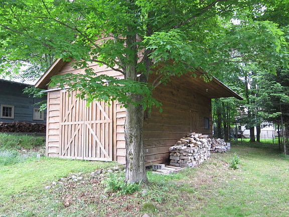 This is an adorable GINGERBREAD TYPE COTTAGE in a great location in the village. Year round and offers additional bunk room in the back of the 14' x 28' garage. There is also a finished room in the basement that would be great for craft or hobby. Deck, small enclosed porch and not a lot to take care of. Great vacation cottage or year round home.