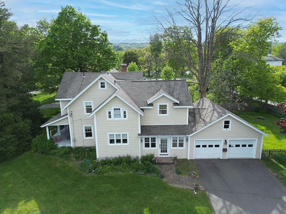 Lovely farmhouse style colonial with a wrap around porch for enjoying the countryside views of Westmoor park. The Formal living room has built in shelving & French doors open to the covered porch to entertain your family & friends. Also opens to the den/office with a lovely wood burning fireplace & window seats for storage.The formal dining room has a built in glass hutch & lovely wood floors.Updated with Central Air, Natural gas heat & HW this charming house has all the modern day conveniences. The addition includes a large family room off the updated kitchen and upper primary bedroom en suite. A large soaking bath & separate shower with gorgeous tile flooring.A large dressing room(use to be a bedroom) has a washer & dryer & 2 closets besides 2 in the bedroom. The other three charming bedrooms share the freestanding soaking tub bathroom. The walk up attic has lots of room for storage. The 2 car attached garage opens to a mud room with 2 closets for easygoing living.Sliders off the family room opens to a deck and fenced in yard features flowers & other perennials. Enjoy this unique farmhouse home with its charm of yesteryear, sit on the front porch & sip lemonade! New tax rate for July 2024 is $12,262.87
