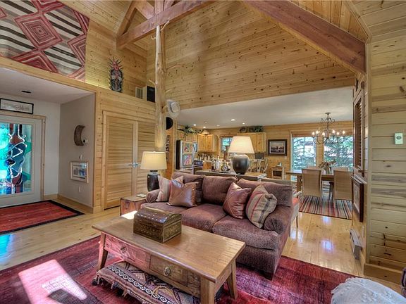 The quintessential mountain home - pine flooring, doors, and vaulted pine ceilings that exude warmth and comfort! Two fireplaces, large west-facing deck, and spectacular views of Buffalo Mountain and the Gore Range add to this comfortable Colorado retreat. FANTASTIC MASTER SUITE as nice as any you will see! VERY NICELY FURNISHED! Home backs to USFS land and is very private. Attached two car garage. Keystone Ranch community amenities include summer outdoor swimming pool and tennis court.