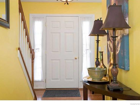 This 2008 Forbes Capretto quality built 3 bdrm Colonial is better than new. All the extras, the window treatments, the tasteful decorating, the professional landscaping, all transform this from just a new-build to a beautiful home. Large bright kit. has island w/breakfast bar, full pantry & stainless appliances. Gracious foyer w/hdwd flrs leads to large eating area. Greatroom has vaulted ceiling, loads of windows & gas Fplc. Roomy bdrms w/mstr connecting to main bath. Freeform stamped concrete patio. Prop backs to woods...no rear neighbors!
