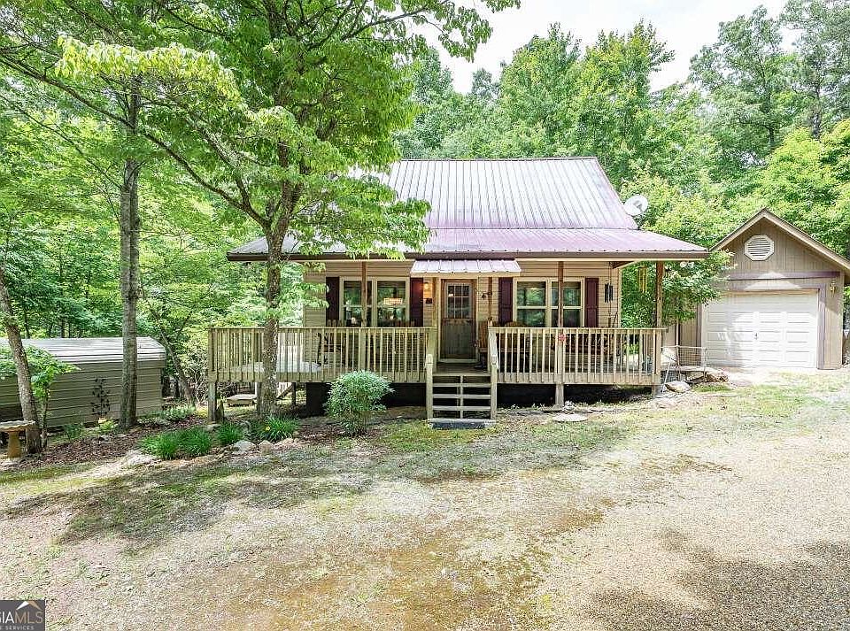 Welcome to a fully furnished and equipped home designed for the modern-day prepper. Turn-key ready & tucked away in a secluded spot, this beautifully treed property has a pantry large enough to store six months of food! The whole house Generac generator has a service contract and a 500 gallon propane tank, as well as a propane fireplace, to hunker down no matter the weather conditions. 3M film on the skylight and sunroom windows keeps the house cooler in the summer. The garage has a large easy access attic space for storage. Also, within the circle-driveway, there is a fully enclosed carport with electricity. Under the house is extensive additional storage with a 50 gallon hot water heater. Also, there is a winter weather water shut-off valve if needed for the outside wall garden hose spigot. The entire house has been custom fitted with storm windows. Offering self-sufficiency & security, this home provides peace of mind and comfort.