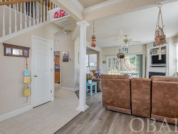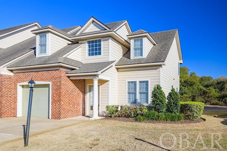 Beautiful Kitty Hawk Condo in the highly desirable Gables neighborhood. This condo has been well maintained. When you arrive you have a single car garage that allows dry entry access. The unit is spacious with an open concept living, dining, & kitchen area. The kitchen is one of the largest of all Gables Units with a island bar with room for four. The dining area can hold a table for 6-8 easily. The living area has a gas fireplace, and tons of natural light with the large windows throughout. The open foyer entry has stairs to the 2nd floor with three bedrooms , one being the Master suite. The master bedroom features a gorgeous ensuite bathroom with dual vanity, soaking tub and walk-in shower all updated in 2021. Two other spacious bedrooms feature bright natural light and nice closet space. New LVP flooring was installed in 2024 on the first level. The newly installed shelving in the garage offers plenty of storage space. A new AC in 2019 & new washer & dryer in 2022. The assessment for a new roof has been paid in 2024. This condo is in a great location being close to shopping, restaurants, schools, and the beach but tucked away enough to avoid the hustle & bustle. After a long beach day you can enjoy your landscaped back yard for entertaining friends & family. You do not want to miss out on this one!!
