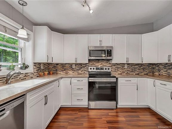 So many recent updates to this wonderful home. New kitchen cabinets, solid surface counter tops, stainless steel appliances, and new flooring throughout. The open concept first floor living will make for great entertaining. This raised ranch has a great floor plan where the master bedroom is on the opposite side of the house from the other bedrooms. All bedrooms are good sized. The lower level features a large family room with plenty of room for everyone. There are also two additional rooms which can be used as guest bedrooms, craft rooms, offices or storage. If this isn't enough, there's a brand new roof, and a brand slider which leads to the rear deck.
