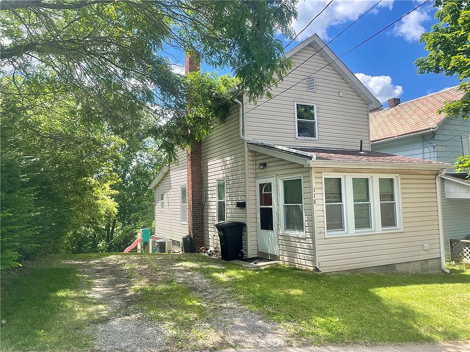 Move right into this 2 bedroom, 1.5 bath home! Ceramic tile entry and kitchen, with hard floors throughout the living and dining room. Enjoy the convenience of first floor laundry, off street parking and a large flowing main living space. Updated and bright kitchen with half bath and formal dining room with built in hutch. Upstairs you will find 2 nice sized bedrooms and a full bathroom. Great storage in the walk-out basement and a private backyard!