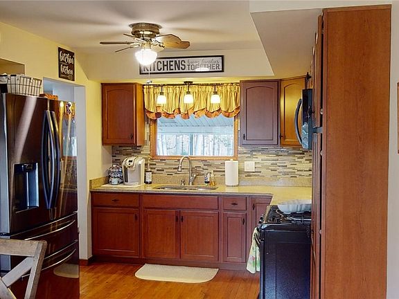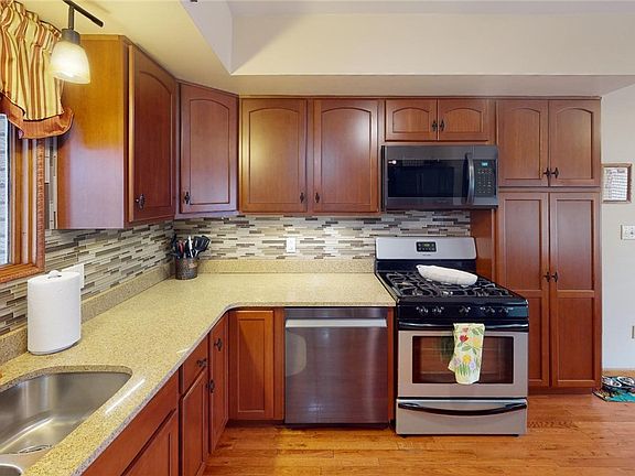 Renovated home that is ready for you to come and enjoy! The hard work has been done for you and this turn key charmer has a lot to offer. Open concept with updated kitchen fully equipped with new appliances. Eat in kitchen/ dining room. Spacious living room with corner windows overlooking the covered screened in rear patio and semi private rear yard. Fireplace has been converted to a pellet stove for easy convenience and warmth. 3 bedrooms on the main floor with optional 4th bedroom potential in the finished lower level with egress window and half bathroom. Enjoy the open concept further in the lower level with bar.