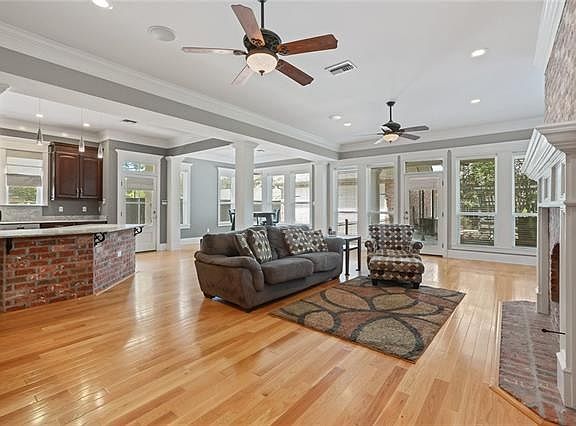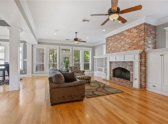 CUSTOM-built home on large 50 x 130 lot located in QUIET neighborhood & FLOOD ZONE X. Open floor plan with wood floors, large wet bar w/refrigerator, fireplace, and 1st floor bedroom suite. LARGE chef's kitchen has granite counters, stainless appliances, pantry, quality cabinetry galore!. STORAGE abounds with many walk-in closets. HUGE master suite & 3 LARGE bedrooms upstairs, one which can be an office. OVERSIZED 2-car garage for WORKSHOP & 2nd refrigerator. TRULY A LOVELY PROPERTY and EXCEPTIONAL VALUE!