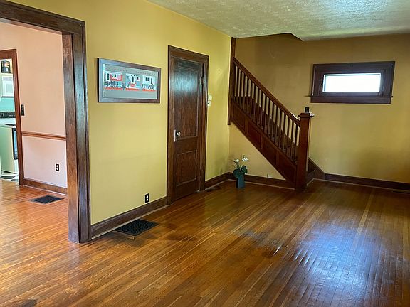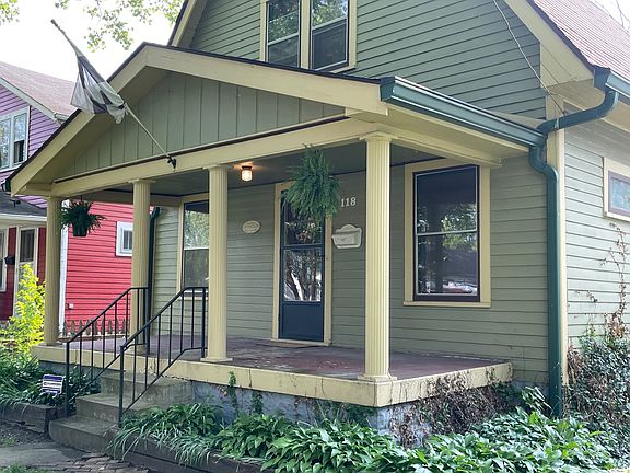 Charming Irvington home nestled on hidden tree lined street near all the hot spots. Steps to the Pennsy Trail. Inviting front porch welcomes you home. Enter into the past as you step onto rich oak hardwood floors in the formal living and dining rooms. Cute kitchen with all appliances has space for eat in area. Upstairs are two bedrooms with pine hardwoods and lots of storage space. Oversize two car detached garage with space for workshop. Extra alley parking space. Brick patio outside the backdoor for grilling and barbecues. Both front and back yards partially fenced. Basement has been waterproofed and electric updated. Walk to Stranebird, Landlocked, Jockamos, Scarlet Lane Brewing. Make this house into your new home!
