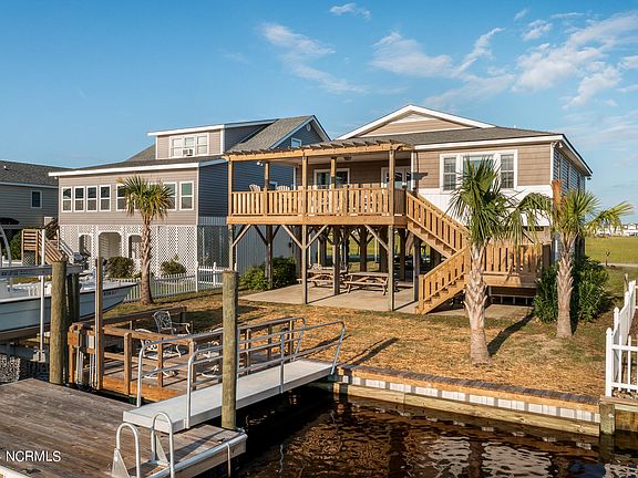 Premier canal location of this classic beach cottage boasts one of the best locations on the island. It fronts the marsh for amazing views and no houses across from you. In the back you will find recently replaced bulkhead, dock, ramp, and 10,000 lb boat lift with upgraded pilings. Both front and back steps have been replaced with some new pilings and the front porch was enlarged to allow for more seating with marsh views. When you walk in you notice the vaulted wood beamed ceiling and cool temps from the 2024 HVAC unit. There is a true primary suite with adjoining private bath and two other bedrooms share a Jack and Jill bathroom. When it's time to unwind after a long day on the beach, enjoy the outdoor shower and then walk up to the oversized back porch overlooking the canal. If you need somewhere for your family and boat, you must come view this home. When you walk out on the dock you will know this is where you should be!