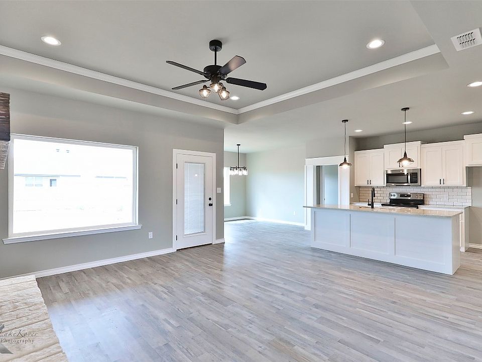 Run, don't walk and take advantage of the $10,000 in builder concessions on this 3 bedroom, 2 and half bath, with a flex room, home located in Wylie ISD and outside the city limits in the Hunters Landing Subdivision. The home offers a split bedroom floor plan with open concept living with a wood burning fireplace. You will love all of the natural light in the living room and dining area from the large fixed windows. Vinyl Plank flooring in the main area and carpet in the bedrooms. Stainless Steel appliances including electric range, dishwasher and microwave and a large island to gather around in the kitchen with a corner pantry. Utility Room is right off the garage with access to the the master closet. Master Suite includes dual sinks, tiled shower and soaking tub with large walk in closet. All of this on a half acre lot that includes wood privacy fence, irrigation, sod, flower bed package and 2 trees in the front yard.