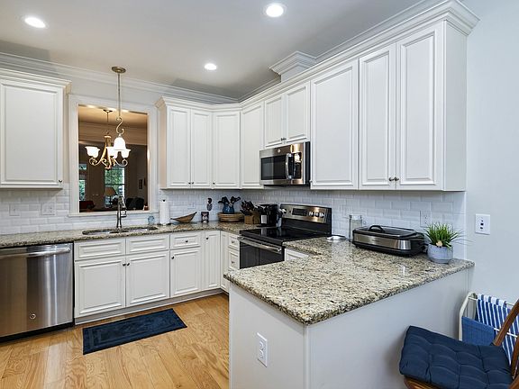 Beautiful custom built townhouse with over 2300 square feet. Large downstairs owner's suite with walk in closet. Granite in both the kitchen and powder room with kitchen having gorgeous tile backsplash & counter space. Hardwood flooring in living areas, wood cabinets & built in bookcase and vented fireplace in living room. Two bedrooms, study/loft area and one full bath on the second floor with large storage. Relax on the screened in back porch & large patio on the back of the unit. One car insulated garage. Wonderful neighborhood in awesome location. Come see this home today!