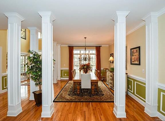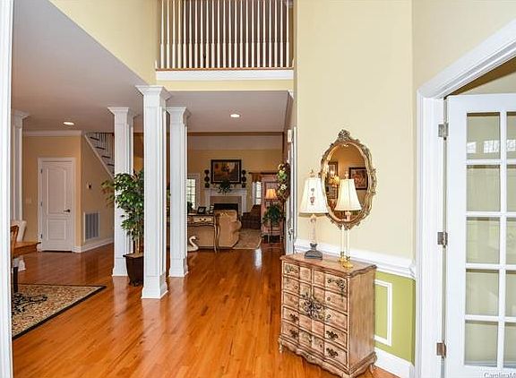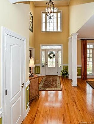 All brick custom built home-4BR's 2.5 BA's. Surrounded by woods for privacy. Open floor plan,2 story foyer and great room. Large kitchen and breakfast room with new SS appliances. There is a hook up for gas stove-currently electric. Lots of hardwood floors. Master Bedroom on main with DLB tray ceiling and large master bath with double vanities and separate shower and whirlpool tub. Screened in porch. Water softener installed. Great home for entertaining! Agent owned.Award winning Clover schools.