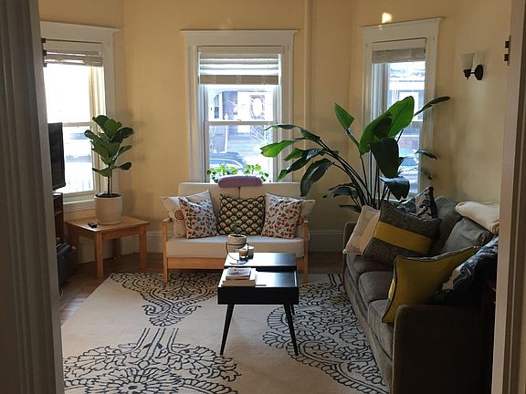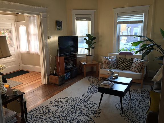 Bright and spacious 2 BR 1 BA unit in a Philadelphia two-family home located in one of Somerville's most sough-after neighborhoods. A rare find in what local residents dubbed the nicest street in Somerville. First floor features a bright living room and dining room with many built-ins, foyer with an ornamental mantle, a spacious kitchen, one large bedroom, fully tiled bath, hardwood floors, dishwasher, gas stove. The kitchen is equipped with a new stove, dishwasher, and cabinets. The spacious second bedroom is on the second floor. Laundry in the basement and shared yard. Owner has lovingly maintained the home. Landscaped yard is shared. Convenient to Davis Square, Community Bike Path, Redline T, Ball Square, Upcoming Green Line T stop, and Tufts University. Showings by appointment only. Tenant pays one month broker fee.