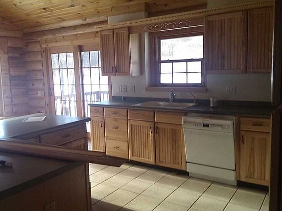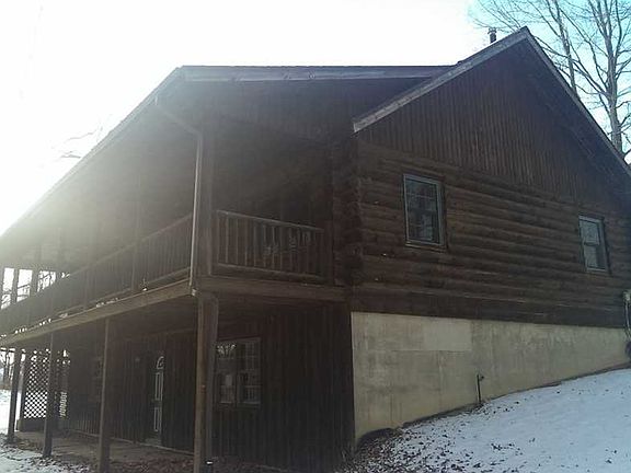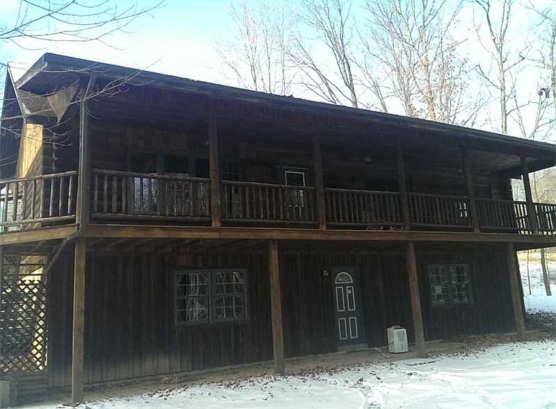 Beautiful log cabin home with main floor living space. Unfinished area on main level for third bedroom, familyroom. Studded walls ready for insulation and drywall. Separate mechanical room. Large master bedroom. Skylights flank kitchen and livingroom. Full front deck/porch for outdoor living. Bay window off kitchen overlooks outbuildings and land. Outbuilding with picnic area. Shed included. (PROPERTY IS IN SLIPPERY ROCK,PA)
