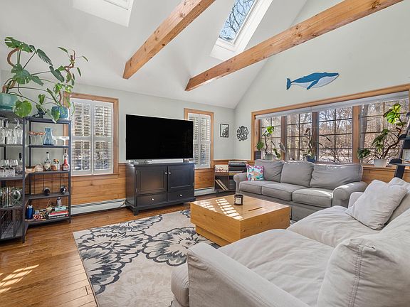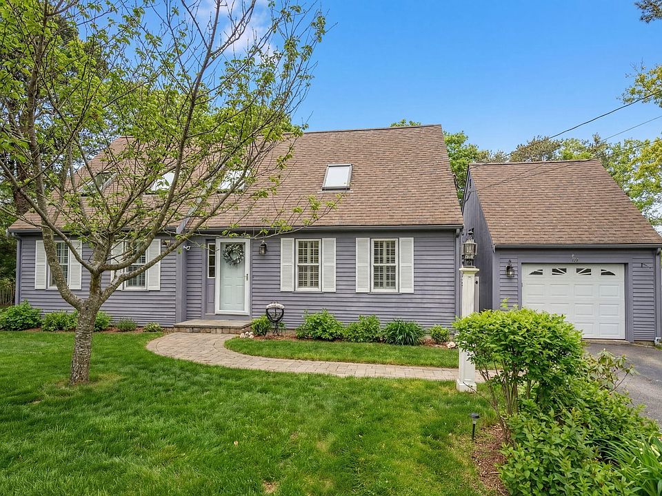 Set back from the road, this spacious 4-bedroom, 2.5-bath home offers a prime Dennis Village location! Near bayside beaches, dining, and shops, it's the perfect place to enjoy the Cape Cod lifestyle. The first level features two inviting living spaces, including a family room with cathedral beamed ceiling, skylights, and ceiling fan, plus a warm living room with cozy fireplace overlooking the beautifully updated deck and backyard. The chef's kitchen features Bosch double ovens, ample cabinetry, generous countertops and island, flowing seamlessly into the dining area for easy entertaining. First-floor living includes a primary suite with updated bath, plus laundry and half bath. Upstairs are three generous bedrooms and a refreshed full bath. Recent improvements include solar skylights, full insulation, upgraded electrical panel, new AC condenser, extended driveway, retaining walls, professional interior and exterior painting, new walkways, full landscaping, and front and rear irrigation. Central air, gas heat, and garage too!